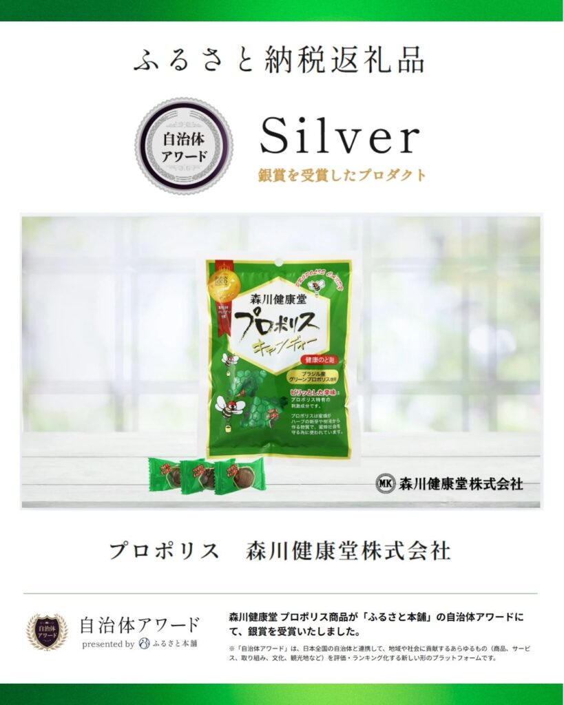 この度、森川健康堂 プロポリス商品が「ふるさと本舗」の自治体アワードにて、銀賞を受賞いたしました。